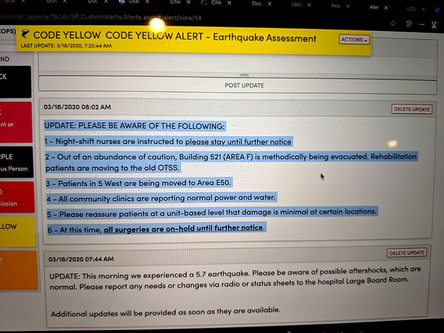 5.7 magnitude earthquake strikes Salt Lake City, temporarily disrupting care and challenging an already frazzled health care community