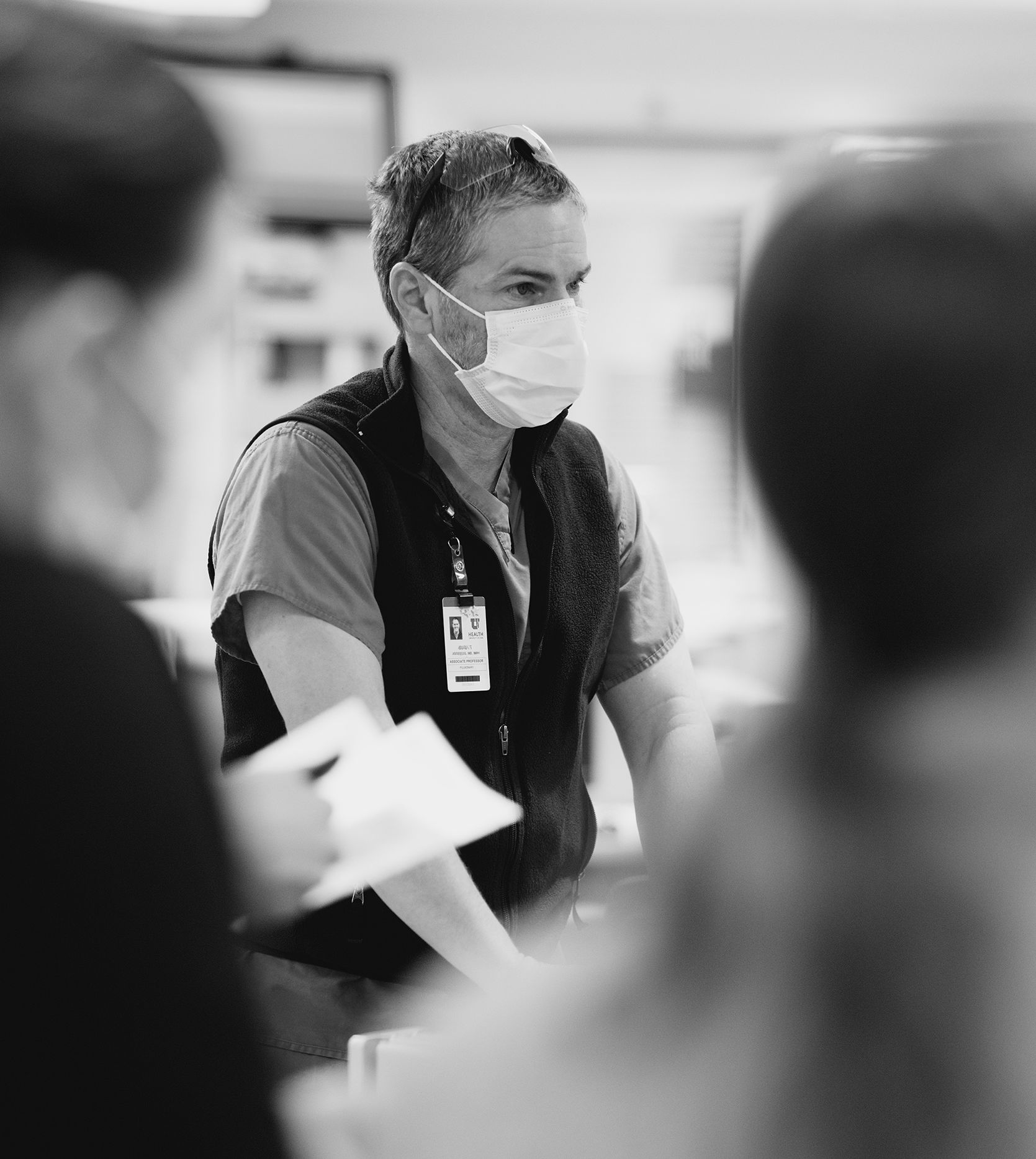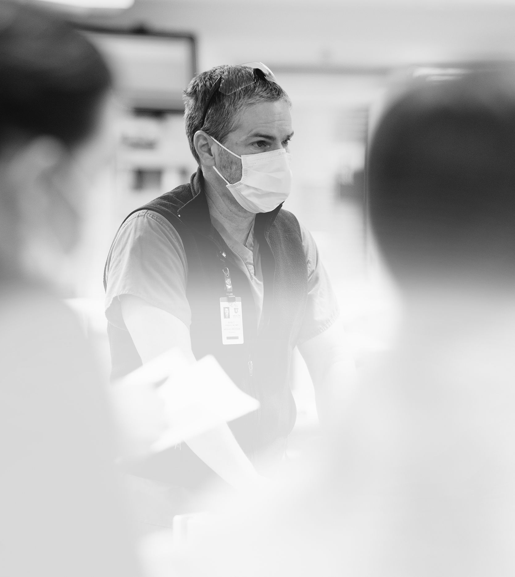 Until finally, at shift end, it’s time for the safety briefing. The off-going charge nurse reviews for oncoming workers the unit’s patients, giving the bigger picture of what’s going on. As the new shift preps for work, hustling and rustling, he or she is the voice of authority: clear, precise, and focused.
