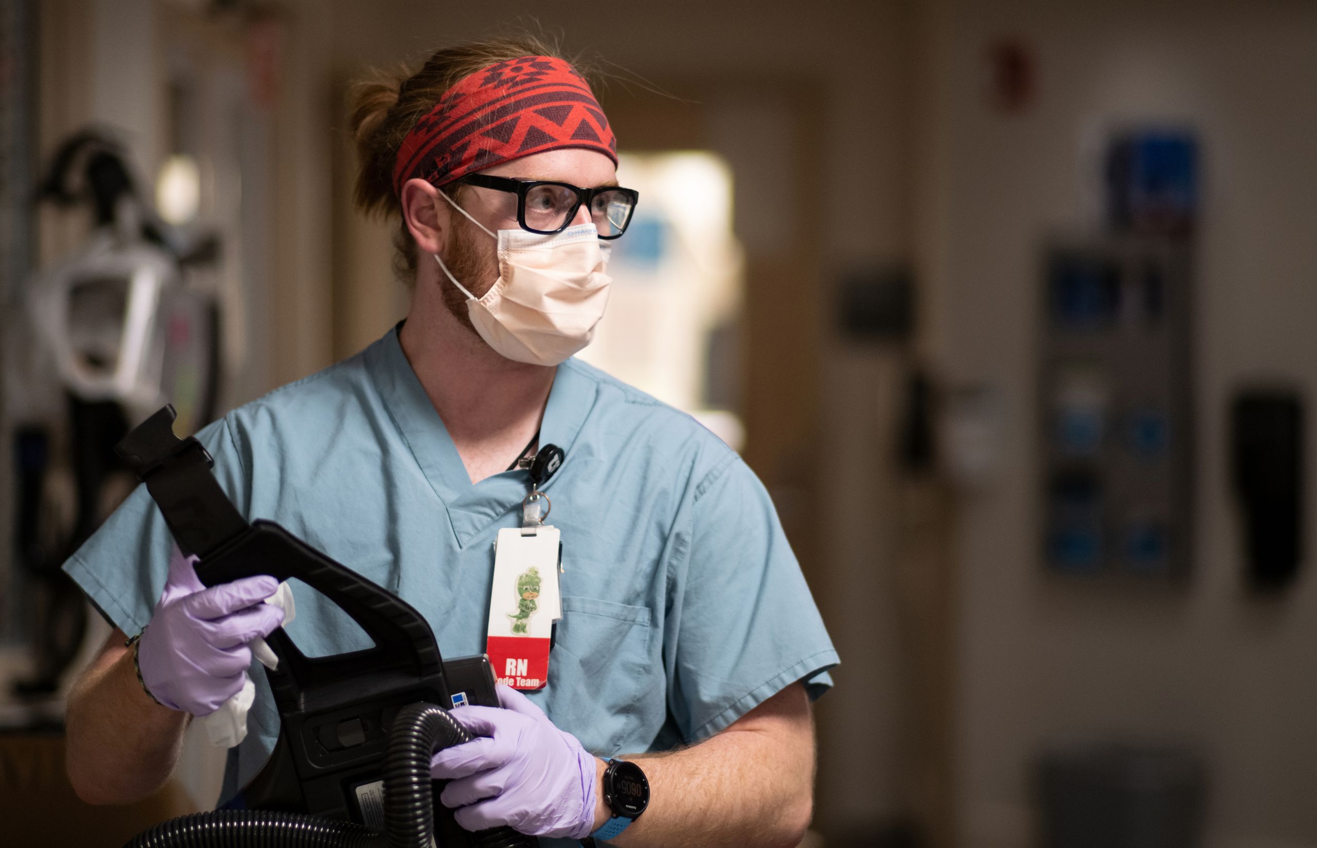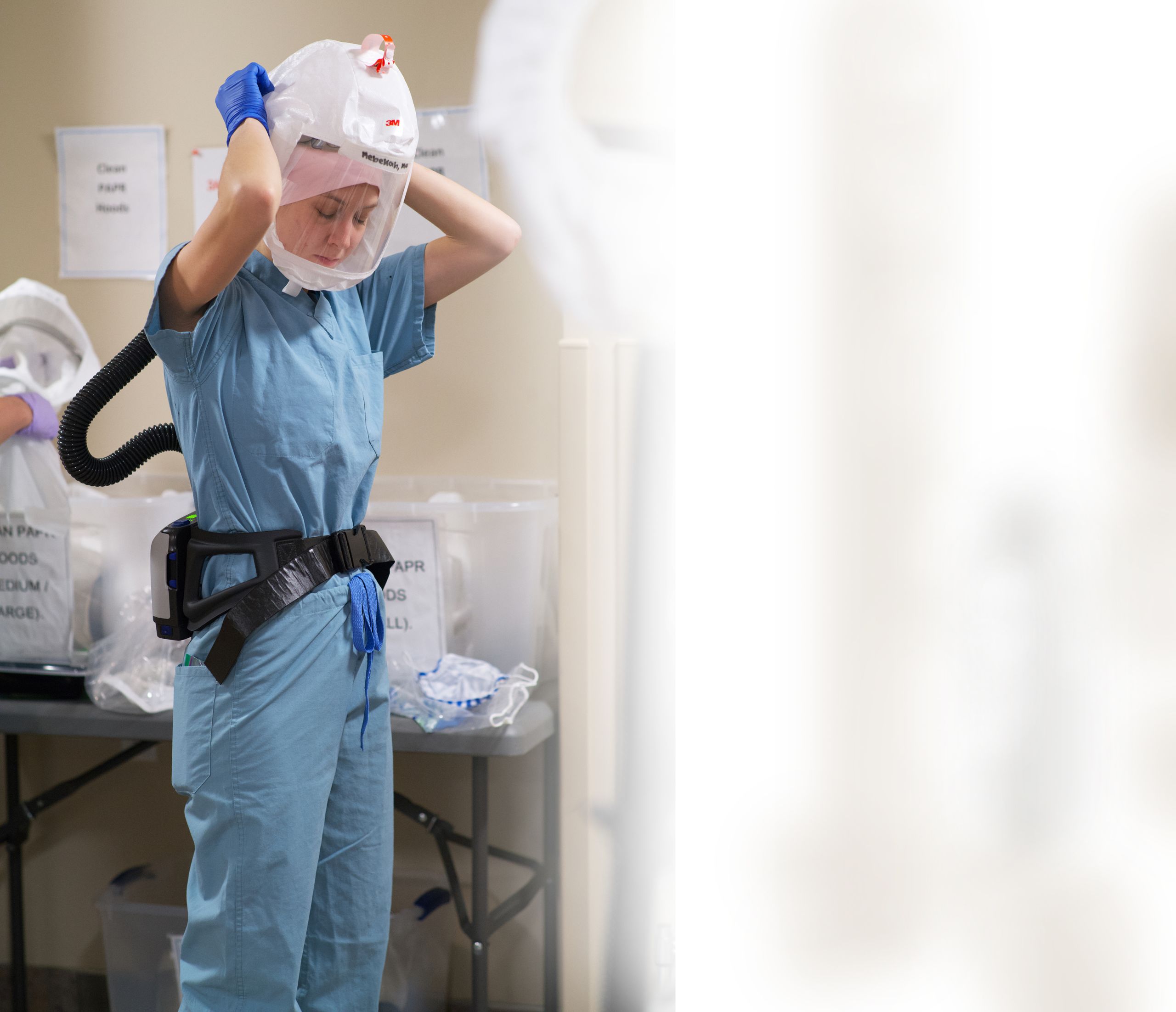 Nurses have to be able to multi-task: cleaning their PAPR while talking to a colleague and also moving to another room. It never stops for 12 hours. Sometimes they get to the end of the shift and haven’t eaten or even gone to the bathroom.