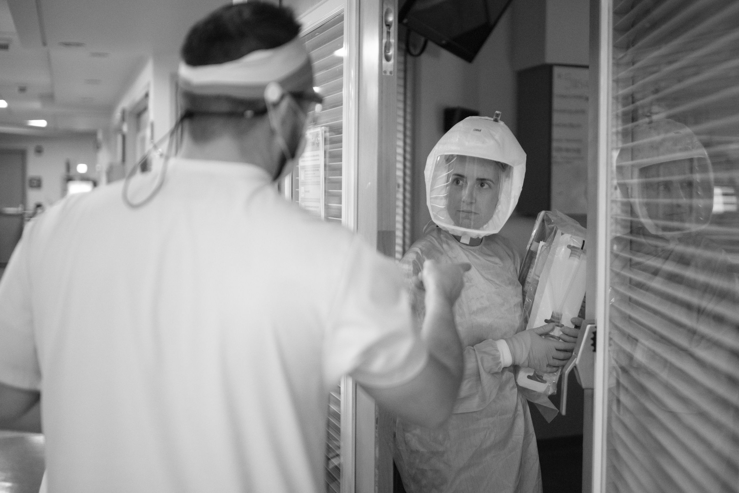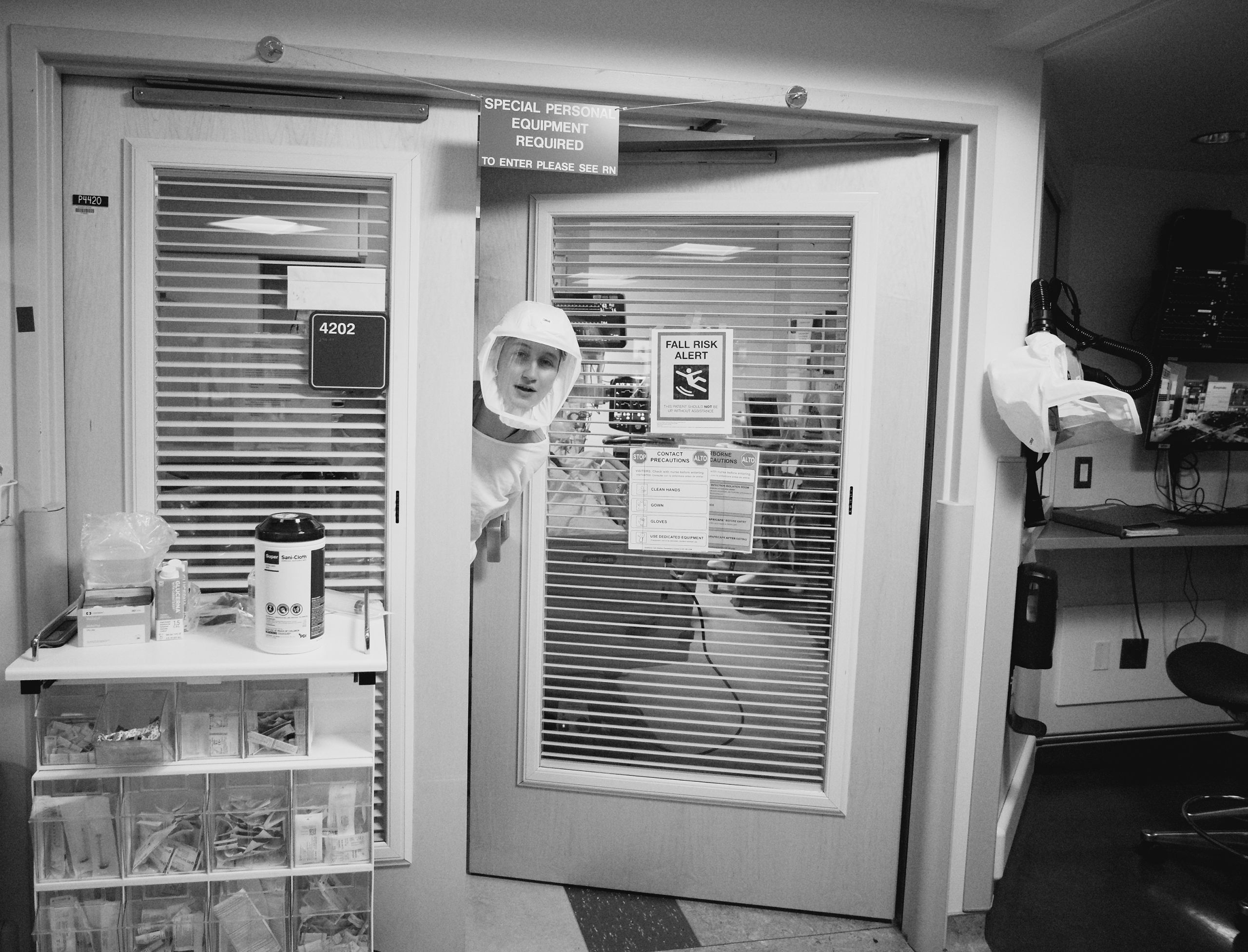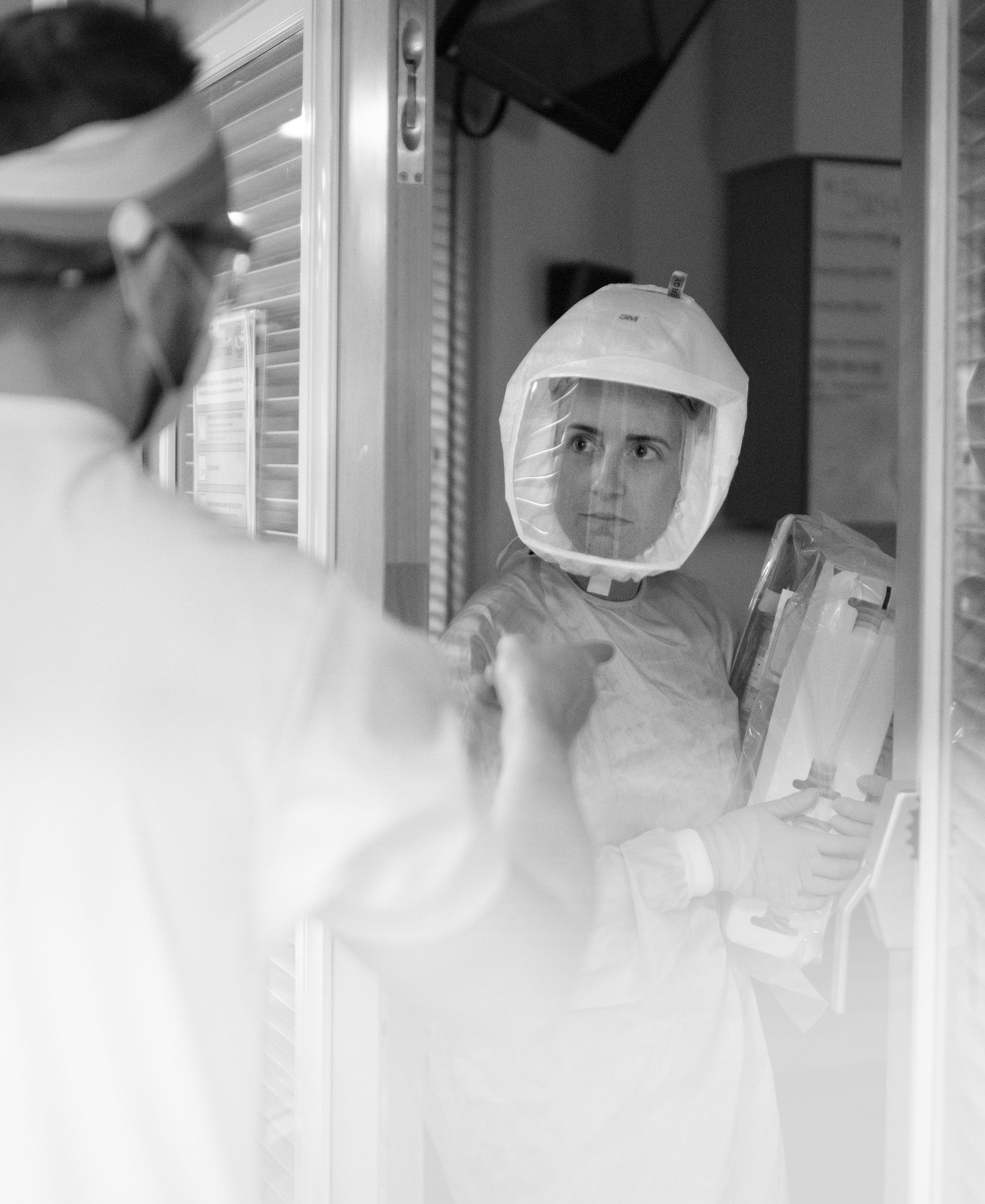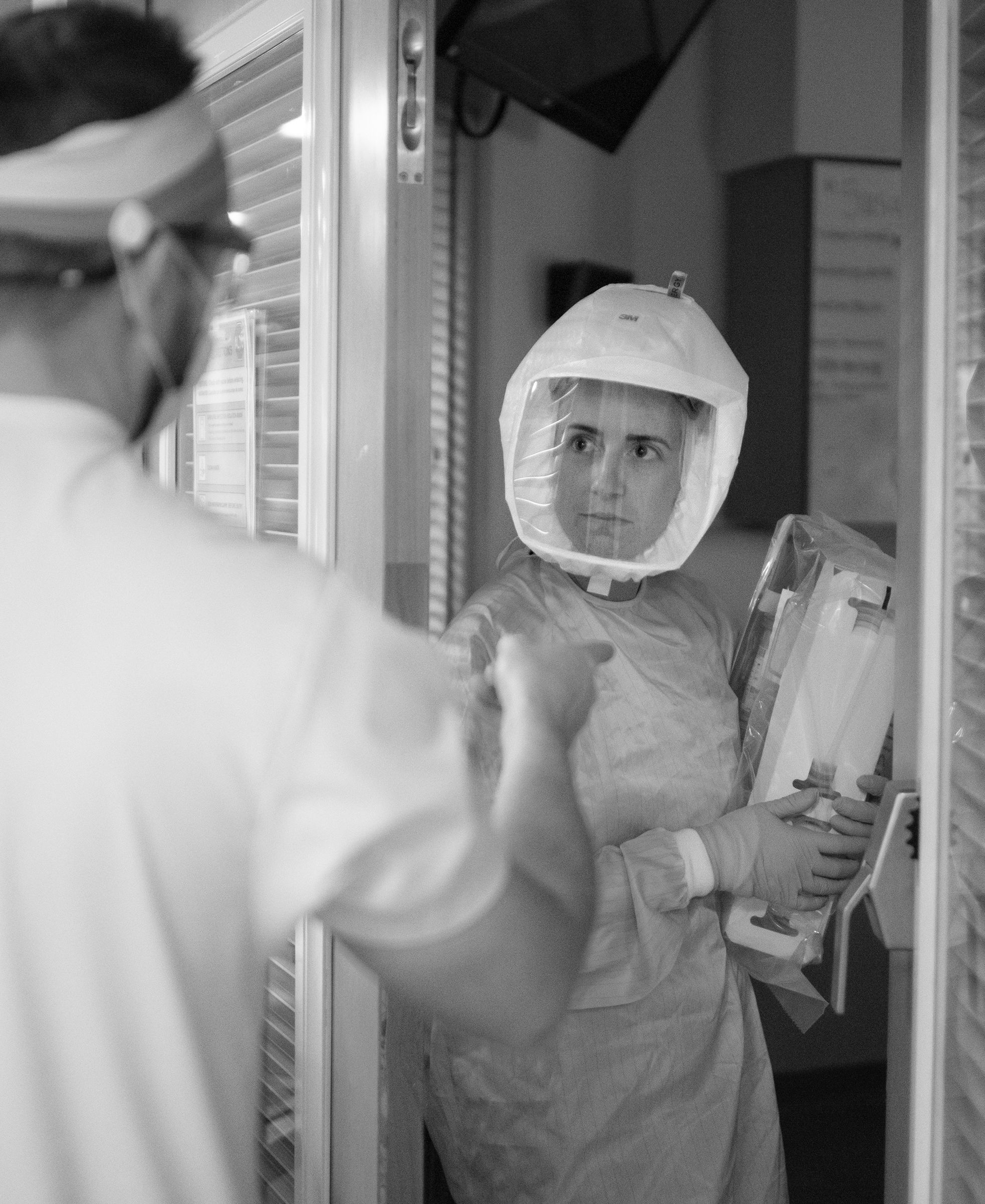 After staff have donned their PAPRs and gone into the patient room, it’s only then they realize that having gone through all the long-since secondhand protocol, they have forgotten something as simple as a syringe. So the staff member sticks her head out the door to ask for help. Sometimes it’s so busy, there‘s no one to be seen. Everybody is in a room dealing with their own patients' medical crises.