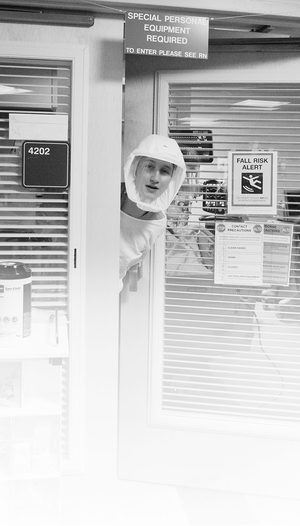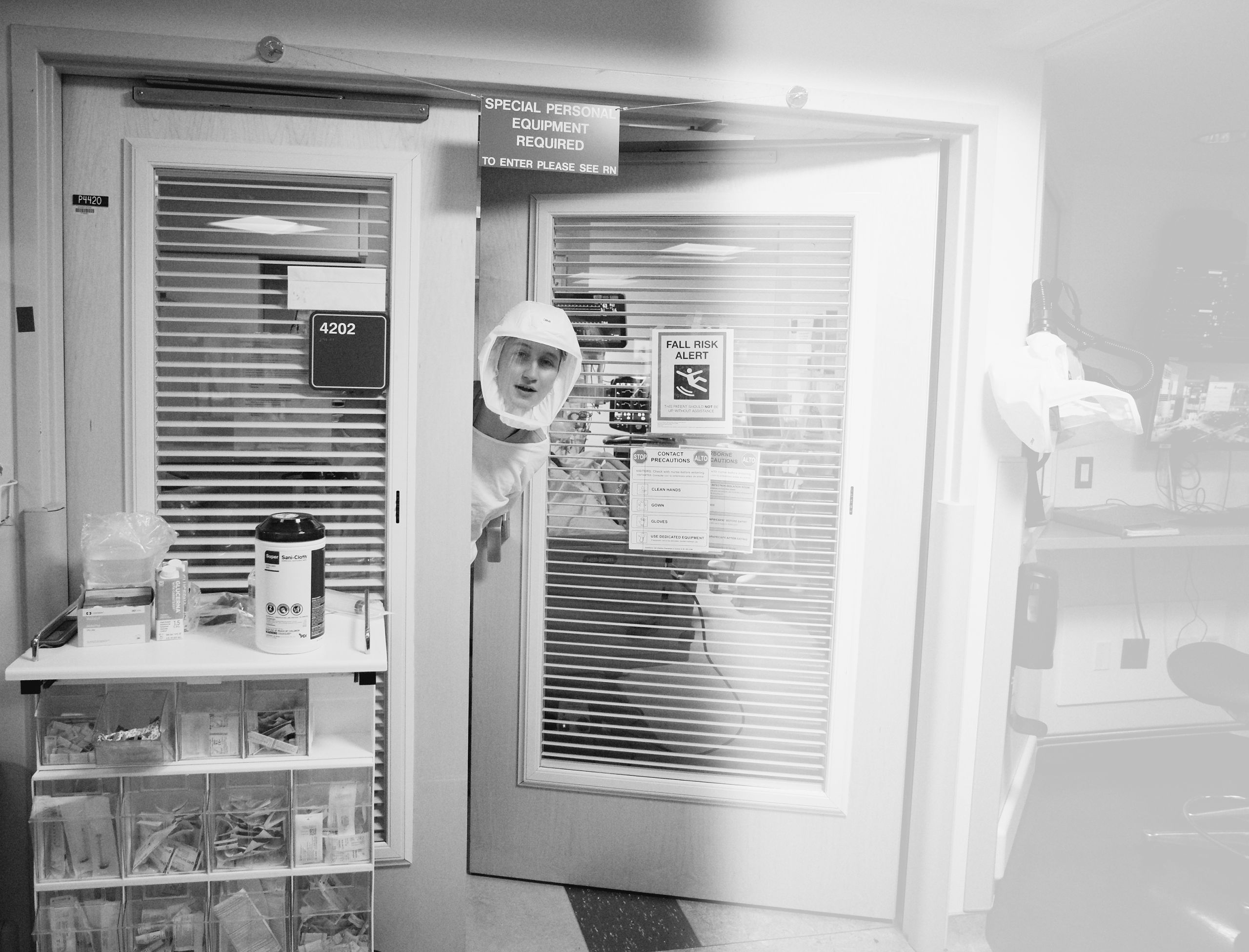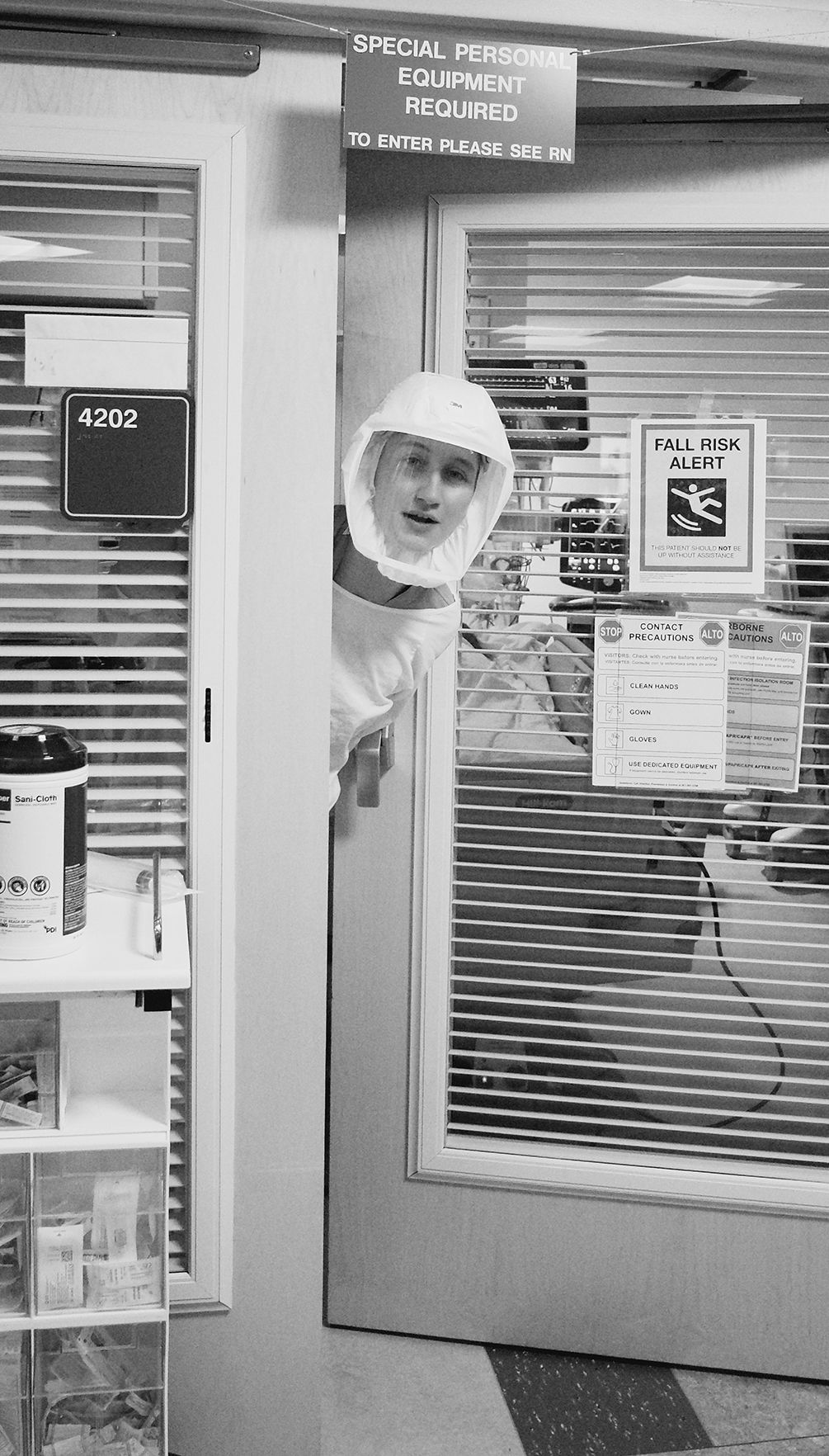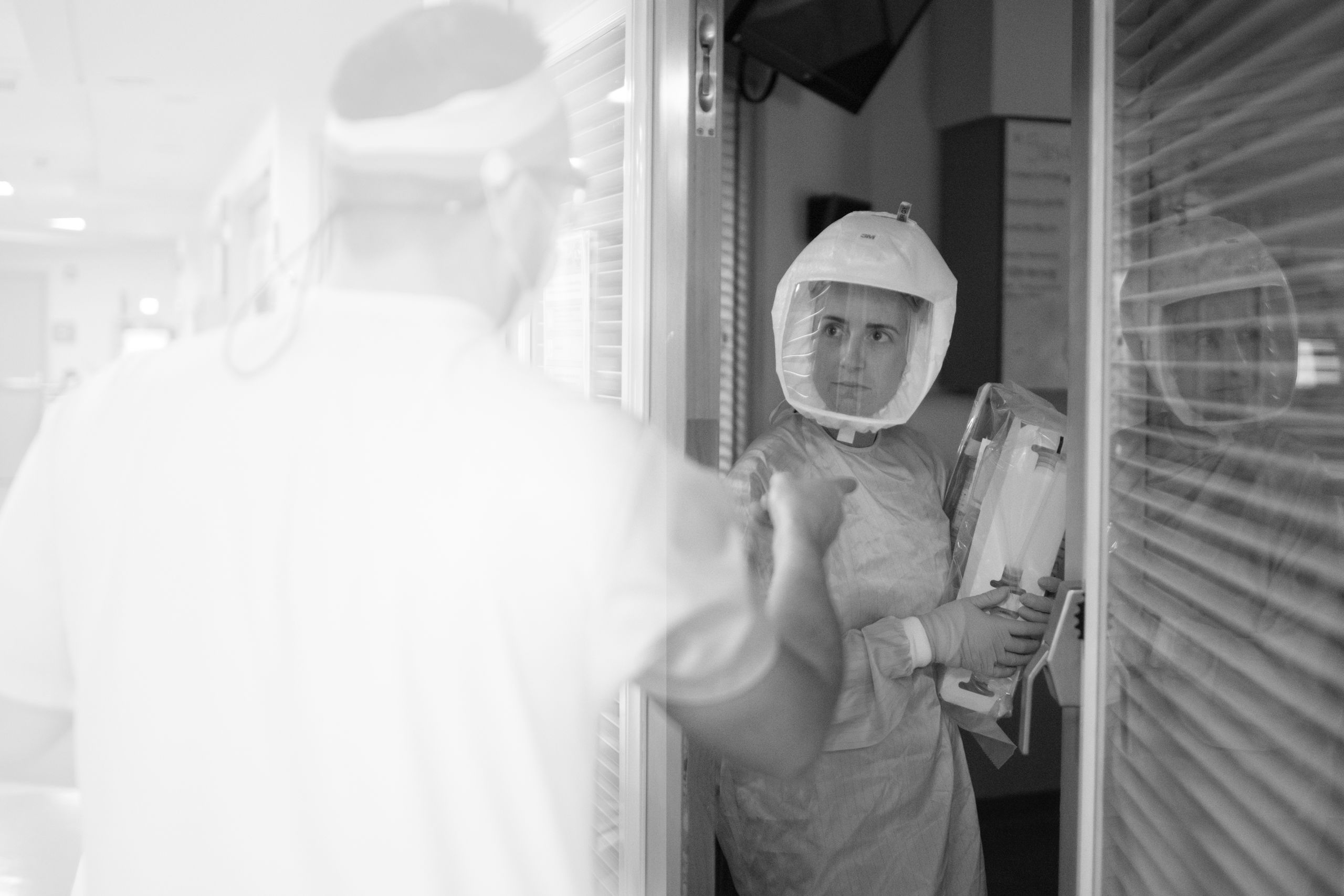 After staff have donned their PAPRs and gone into the patient room, it’s only then they realize that having gone through all the long-since secondhand protocol, they have forgotten something as simple as a syringe. So the staff member sticks her head out the door to ask for help. Sometimes it’s so busy, there‘s no one to be seen. Everybody is in a room dealing with their own patients' medical crises.