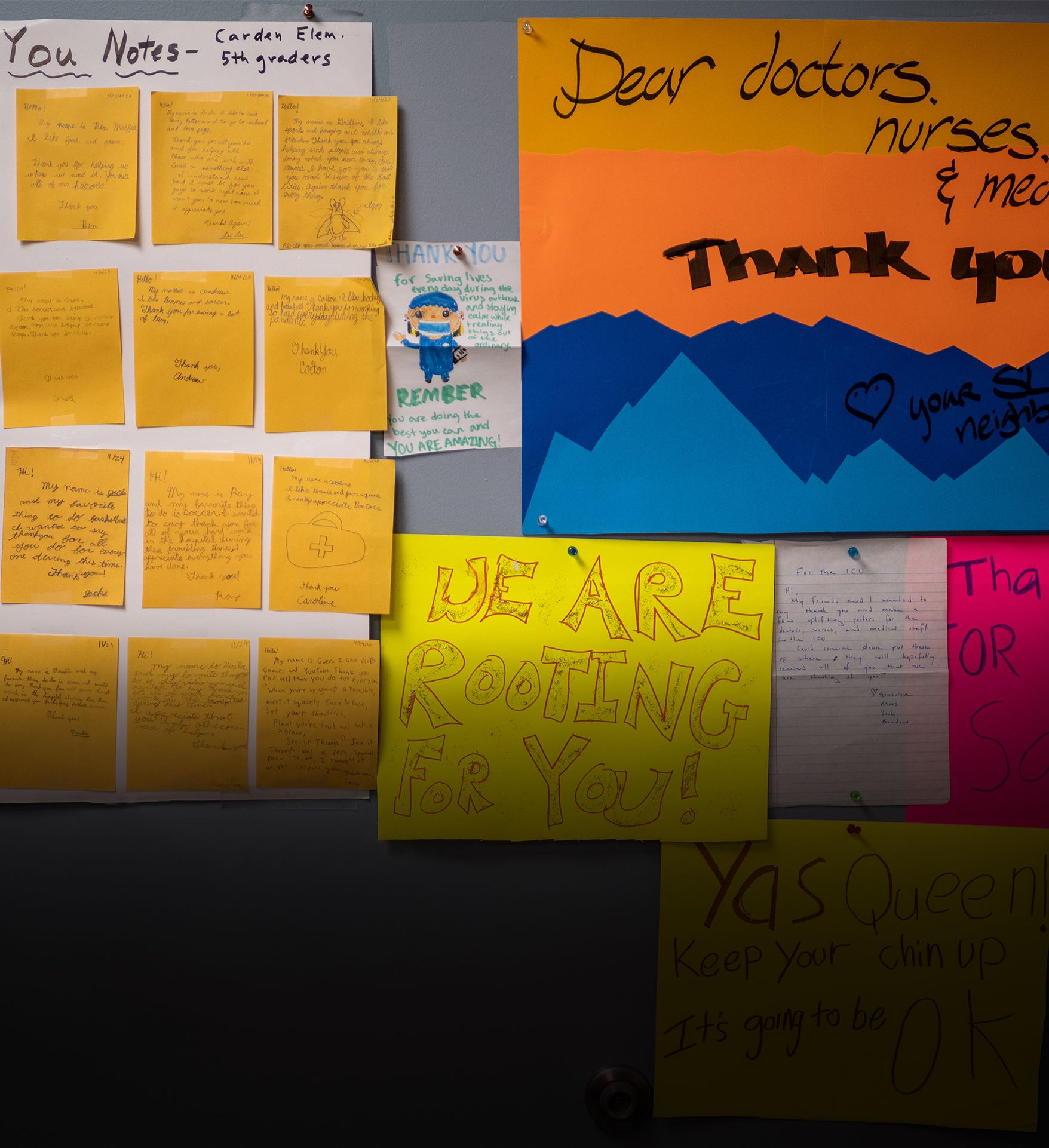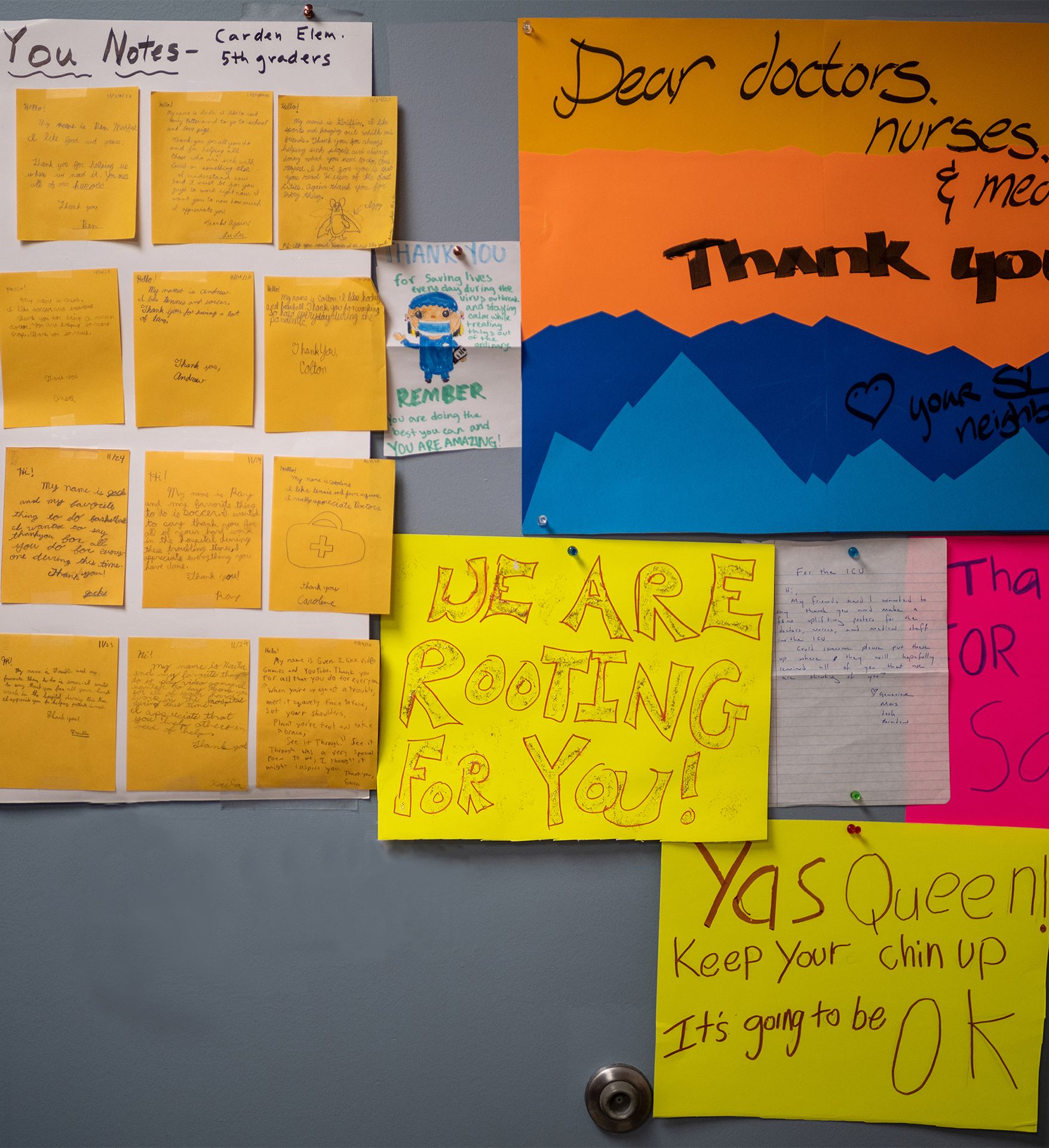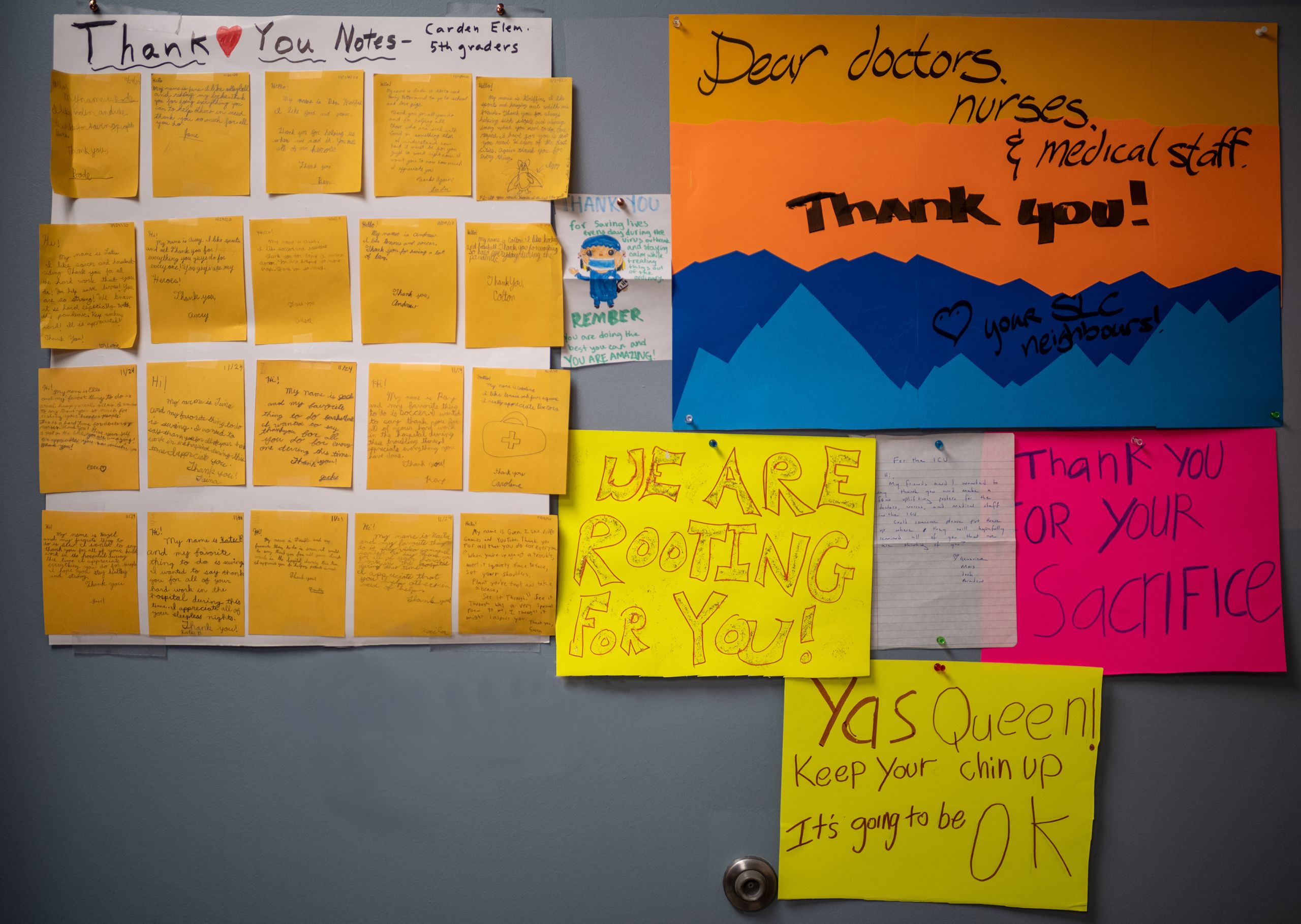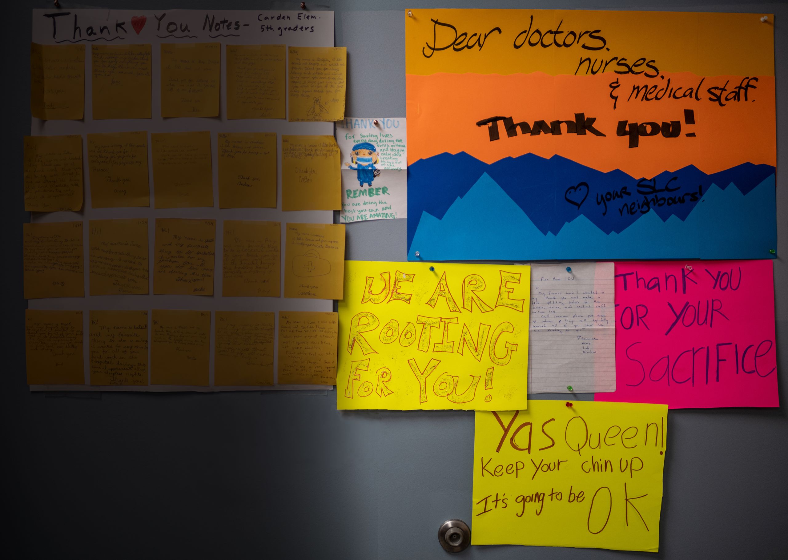 Notes from people in the community saying thank you are plastered all over the unit. They are reminders that people do care about what frontline workers are going through, even if they feel so cut off from the rest of the world at times. Equally if not more impactful are letters and emails from virus survivors and relatives of deceased patients sharing their perspective on what they went through at the unit.