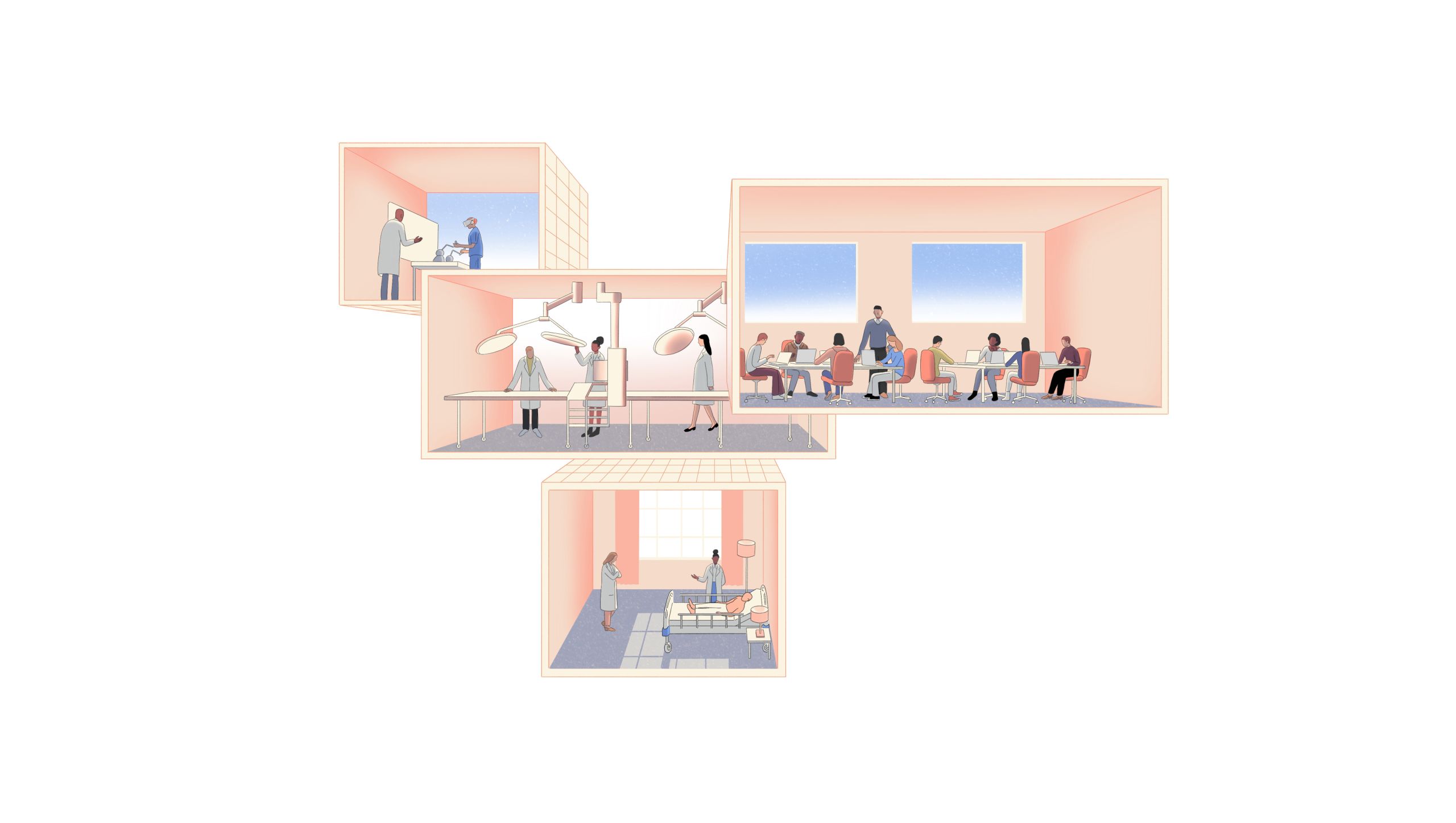In addition to the type of virtual reality simulation students like Jane will experience, there will also be larger physical theaters designed to replicate clinical environments, treatment areas, patient rooms, outdoor settings such as the desert or mountains, and mock operating rooms.